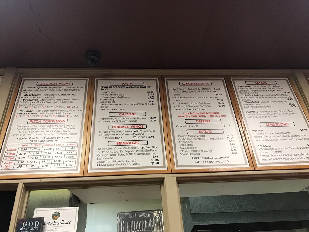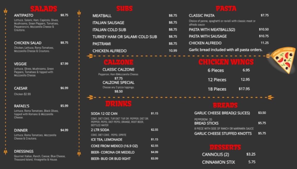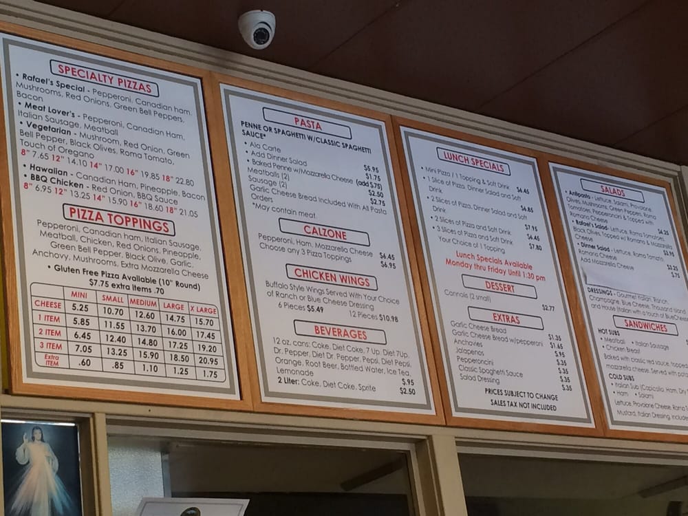 Rafael’s Pizza Menu